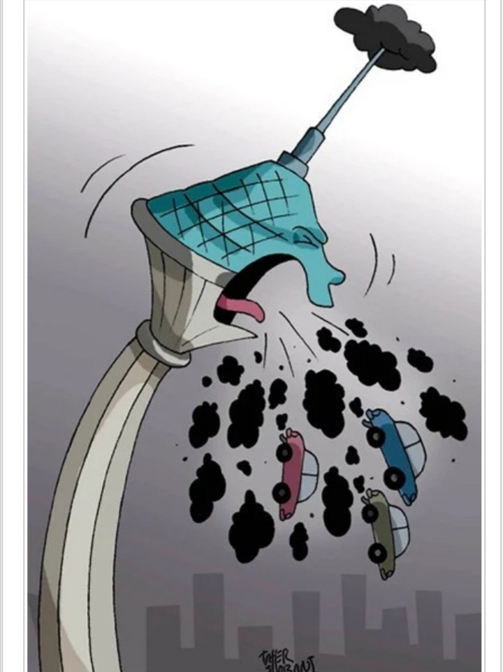 درهفته هاگذشته افزایش غلظت آلاینده های جوی درتهران راداشتیم که این پدیده مشکلاتی رابرای سلامت زندگی مردم به دنبال دارد مشکلات تنفسی برای انسان وسایر موجوداتی که دراین محیط زیست زندگی می کنند این سوژه درکارهای متعددی ازکاریکاتوریستها به تصویر کشیده شد که نظرتان رابه آن جلب می کنم.