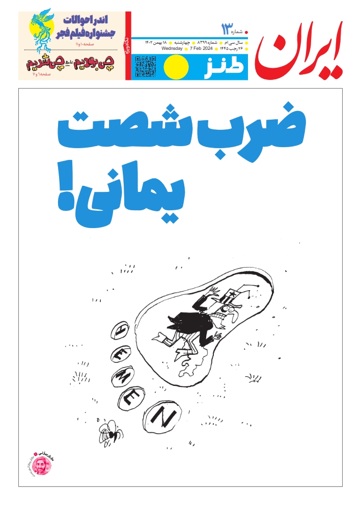سیزدهمین شماره ضمیمه هفتگی طنز روزنامه ایران، صبح امروز –۱۸ بهمن ۱۴۰۲– منتشر شد.