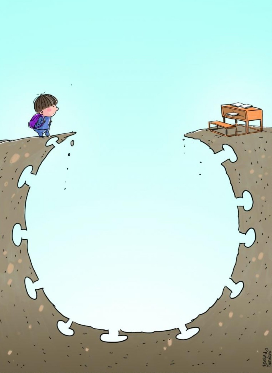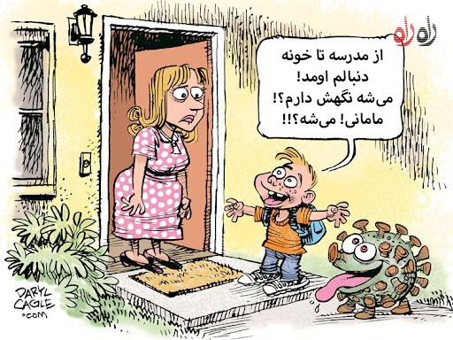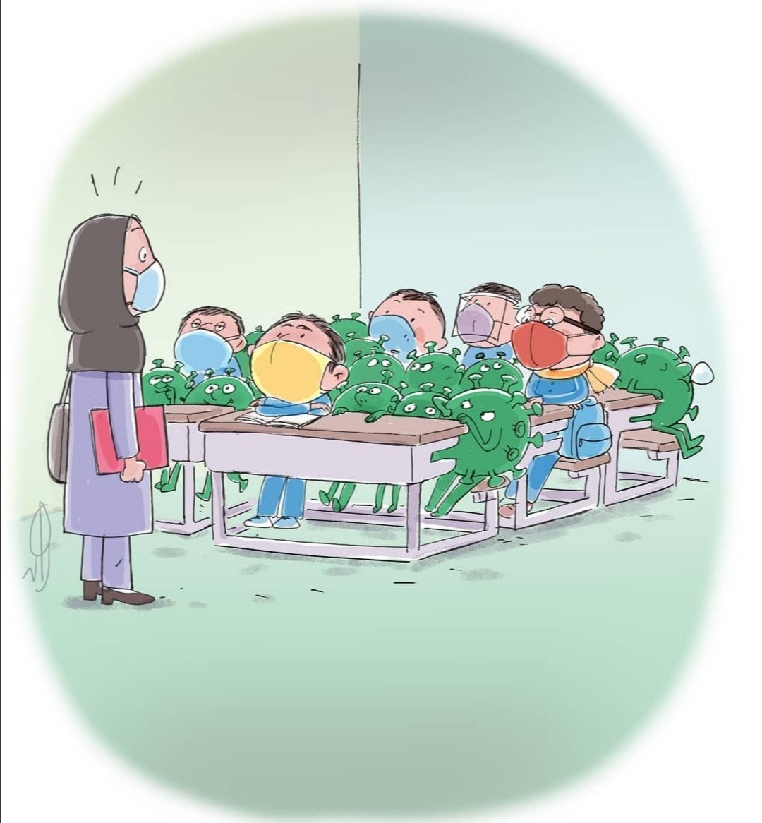 دانش آموزان با وجود اینکه شانس ابتلای کمتری دارند ولی از ناقلهای بالقوه ویروس کرونا به حساب میآیند. در ادامه آثاری از کاریکاتوریستها را میبینیم که بازگشایی مدارس و تحصیل دانش آموزان در این برهه را سوژه خود قرار داده و آثار زیر را خلق کرده اند: