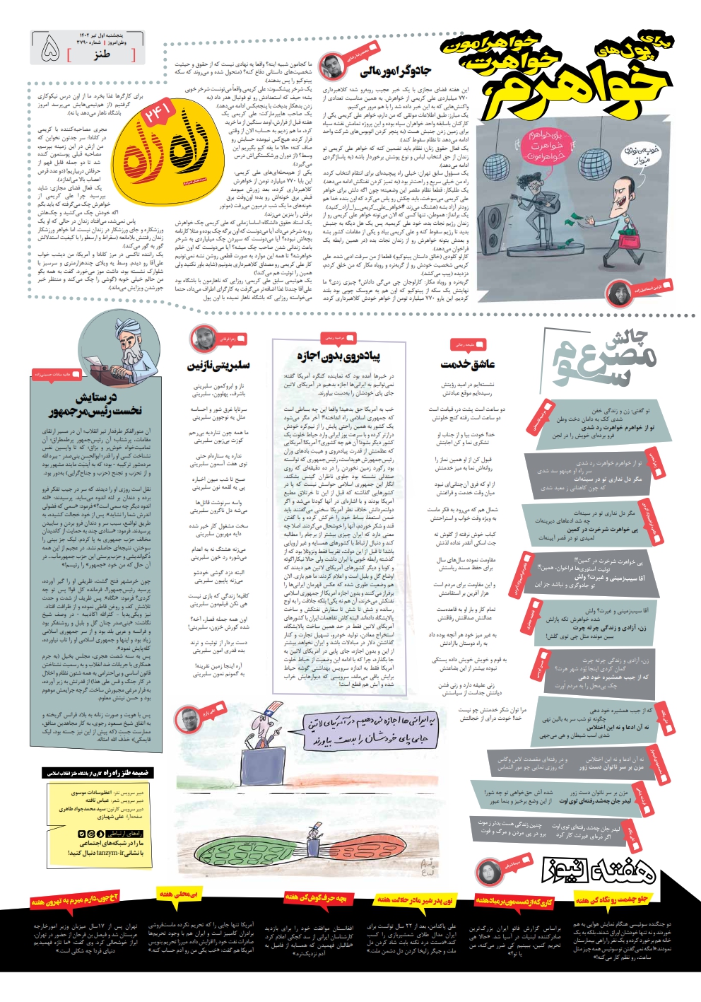 دویست و چهل و یکمین شماره ضمیمه هفتگی طنز راه راه در روزنامه وطن امروز، صبح امروز –۱ تیر– منتشر شد.در این شماره از راه راه سوء استفاده ۷۷۰میلیارد تومانی علی کریمی از خواهرش و همچنین موضوعات روز را زیر ذرهبین بردهایم. طنزها و اشعار و کاریکاتورهای راه راه را از دست ندید.