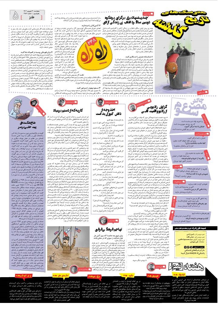 دویست و چهل و هشتمین شماره ضمیمه هفتگی طنز راه راه در روزنامه وطن امروز، صبح امروز –۳۰ شهریور– منتشر شد.در این شماره از راه راه شکست پروژه ضد انقلاب برای اغتشاش دوباره در داخل کشور و همچنین موضوعات روز را زیر ذرهبین بردهایم. طنزها و اشعار و کاریکاتورهای راه راه را از دست ندید.