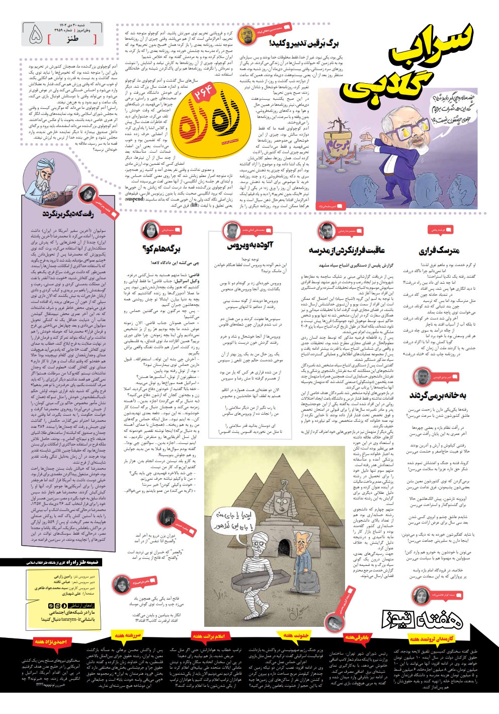 دویست و شصت و چهارمین شماره ضمیمه هفتگی طنز راه راه در روزنامه وطن امروز، صبح امروز –۳۰ دی– منتشر شد.در این شماره از راه ‌راه سالگرد امضای برجام و همچنین موضوعات روز را زیر ذره‌بین برده‌ایم. طنزها، اشعار و کاریکاتورهای راه ‌راه را از دست ندید.
