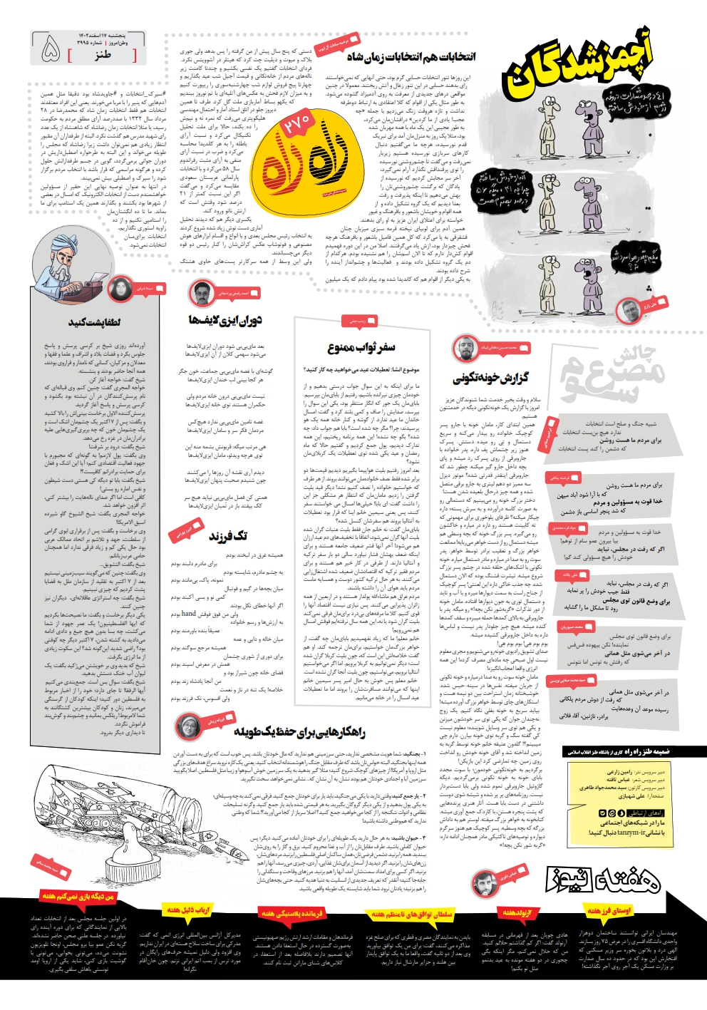 در این شماره از راه راه مشارکت در انتخابات و همچنین موضوعات روز را زیر ذرهبین بردهایم. طنزها، اشعار و کاریکاتورهای راه راه را از دست ندید.