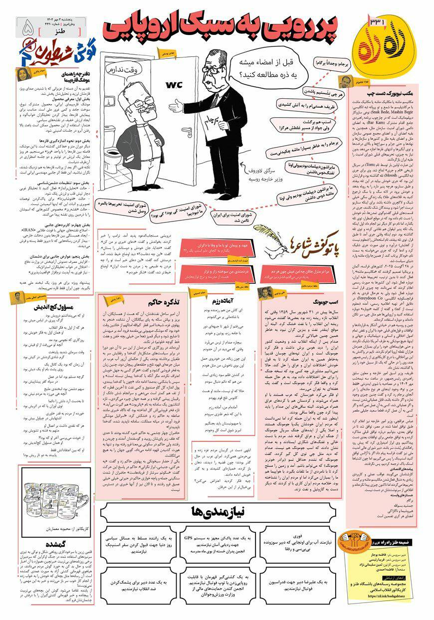 سیصد و سی و یکمین شماره ضمیمه هفتگی طنز راهراه در روزنامه وطن امروز، صبح امروز -۳مهر- منتشر شد. در این شماره از راهراه، عهد شکنی اروپا و موضوعات روز را زیر ذرهبین بردهایم. طنزها، اشعار و کاریکاتورهای راهراه را از دست ندهید.