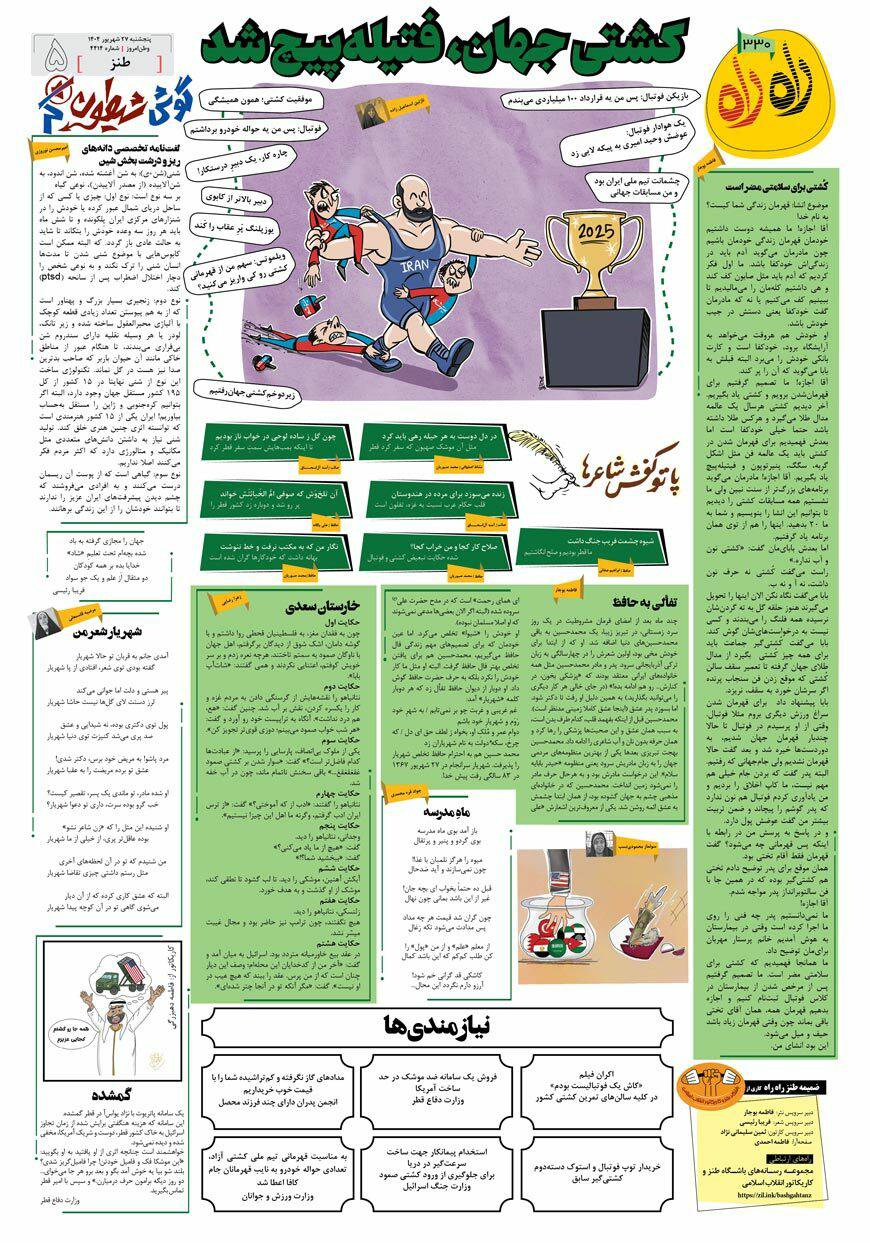 سیصد و سیمین شماره ضمیمه هفتگی طنز راهراه در روزنامه وطن امروز، صبح امروز -۲۷شهریور- منتشر شد. در این شماره از راهراه، قهرمانی در کشتی و موضوعات روز را زیر ذرهبین بردهایم. طنزها، اشعار و کاریکاتورهای راهراه را از دست ندهید.