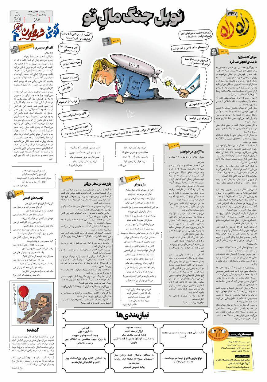 در این شماره از راهراه، اطلاع داشتن ترامپ از حمله اسرائیل به ایران و موضوعات روز را زیر ذرهبین بردهایم. طنزها، اشعار و کاریکاتورهای راهراه را از دست ندهید.