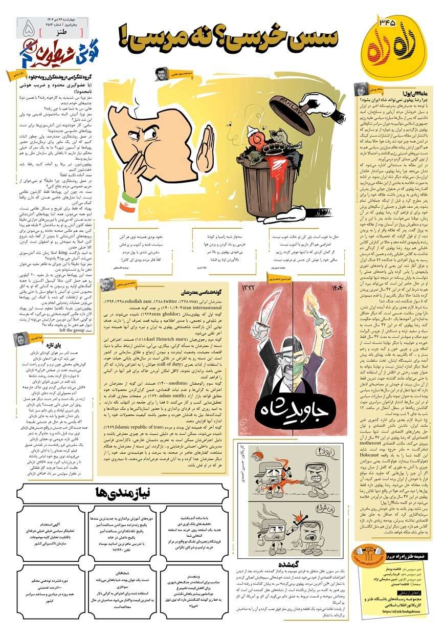 در سیصد و چهل و پنجمین شماره از ضمیمه طنز راه راه به موضوع اغتشاشات و مطالبات مردم پرداختیم.