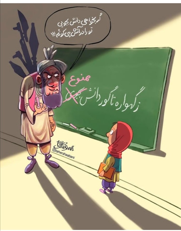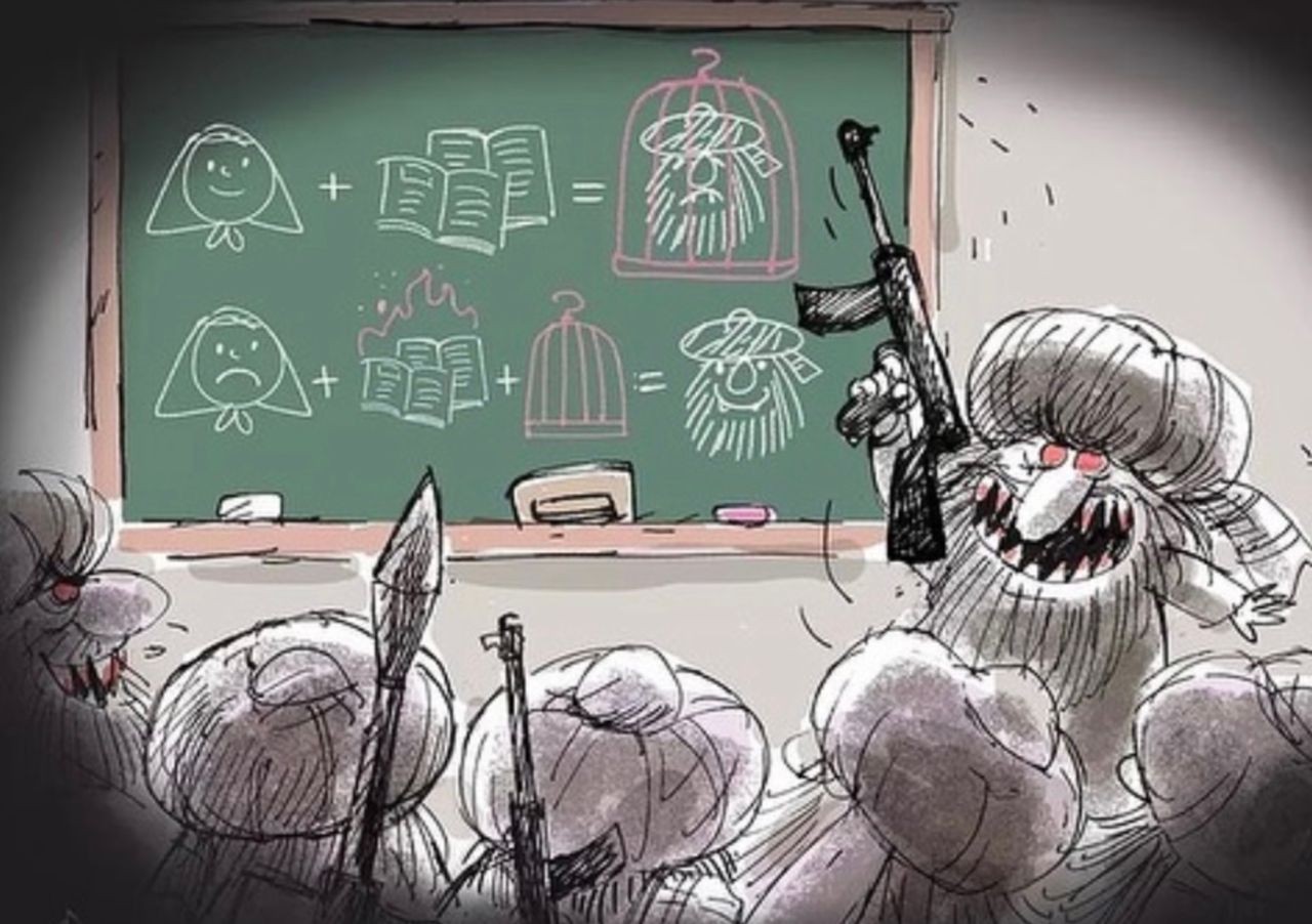 شروع سال تحصیلی درافغانستان با ممنوعیت تحصیل برای دختران و منع تدریس برای معلمان زن، سوژه ی تاسف بار بسیاری ازکاریکاتور ها شد و کاریکاتوریست ها هریک سعی کردند در آثارشون تحجر طالبان و مظلومیت دختران افغان را به تصویر بکشند.